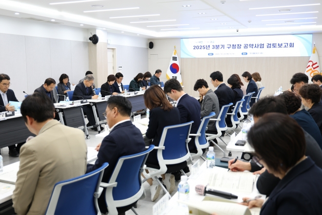 ▲ 10월 23일 구청 창의홀에서 열린 ‘2025년 3분기 민선8기 공약사업 검토보고회’ 개최 모습