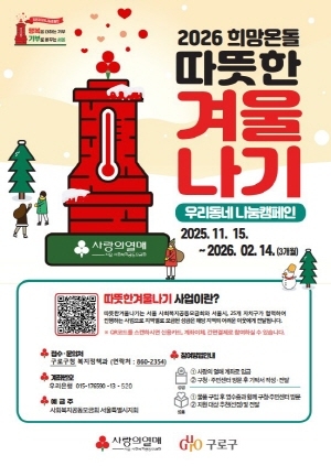 구로구는 11월 15일부터 내년 2월 14일까지 3개월간 ‘2026 희망온돌 따뜻한 겨울나기’ 사업을 시작한다.