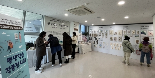 ▲2024년 평생학습 작품전시회. 수강생들이 직접 만든 회화, 공예 등 다양한 작품이 전시돼 관람객의 관심을 끌고 있다.