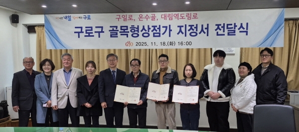 구일로, 온수골, 대림역도림로 골목형상점가 지정서 전달식이 지난 18일 오후 4시 구청 3층 르네상스홀에서 열렸다.
