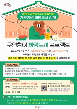 구로구가 25일부터 12월 14일까지 내년 개관 예정인 구로문화누리도서관과 구로천왕도서관에서 ‘희망도서 프로젝트’를 추진한다.