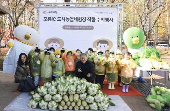 이날 행사에는 장인홍 구청장을 비롯한 관내 보육시설 원아 50명 등이 참석해 도시농업체험장에서 재배한 배추 30포기와 무 20개를 수확한 뒤 김장 체험을 했다.