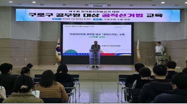 구로구선거관리위원회(위원장 박정길)는 지난 12월 3일 오전 9시 30분 구로구청 5층 강당에서 공무원을 대상으로 ‘2025년 제2회 찾아가는 공직선거법 강의’를 진행했다.
