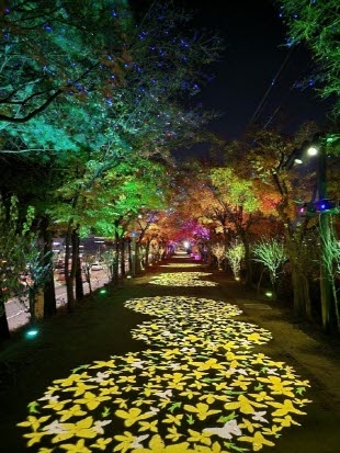 ▲가을 단풍잎이 흩날리는 ‘단풍길’ 조명 연출 모습