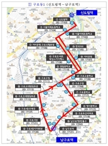 ▲ 무료 셔틀버스 세부 노선도 △구로동1(신도림역∼남구로역)