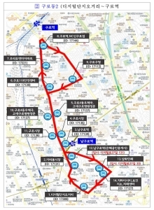 ▲ 무료 셔틀버스 세부 노선도 △구로동2(디지털단지오거리∼구로역)
