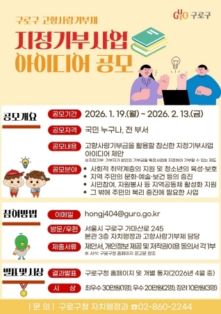 구로구가 고향사랑기부제 기부금의 투명하고 효과적인 활용을 위해 ‘고향사랑기부제 지정기부사업 아이디어 공모’를 추진한다.