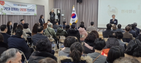 ▲장인홍 구청장이 지난 1월 12일부터 23일까지 ‘2026년 동(洞) 신년인사회’를 관내 16개 동을 모두 순회하며 마쳤다. <사진은 지난 23일 구로3동 신년인사회 모습>
