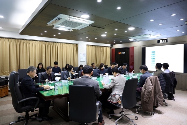 ▲ 장인홍 구로구청장과 참석자들이 ‘G-밸리 생활권 보행환경 종합정비사업 중간보고회’에서 보고 내용을 청취하고 있다.