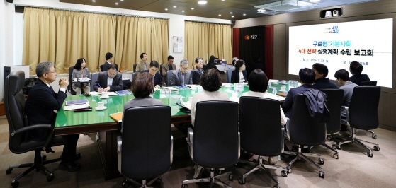 구는 3월 23일 오전 9시 구청 르네상스홀에서 열린 주요간부회의에서 ‘구로형 기본사회’ 4대 전략 실행계획을 보고하고, 주요 내용과 추진 방향을 공유했다.