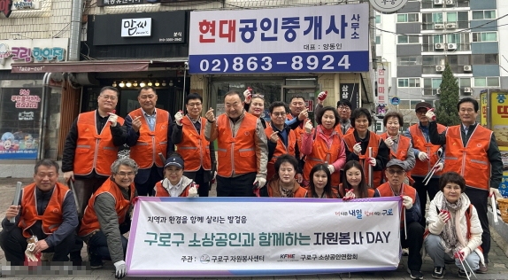 구로구가 지역 소상공인과 함께 깨끗한 골목상권 조성을 위한 환경정화 봉사활동을 실시했다고 밝혔다.