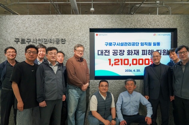 구로구시설관리공단(이사장 송인호)은 대전 지역 화재 피해 복구 지원을 위해 임직원이 자발적으로 모금한 성금 121만 원을 지난 4월 20일 대한적십자사에 전달했다고 밝혔다.