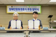부산장애인총연합회(회장 조창용)는 부산진라이온스클럽(회장 임진현)과 12월 3일(화) 오전 11시 부산장애인총연합회에서 「장애인 합동결혼식 후원을 위한 협약식」을 진행했다. 부산진라이온스클럽에서는 임진현 회장, 정지호 총무, 류지호 부총무, 김태정 이사, 이정희 사무장이 참여했으며, 부산장애인총연합회에서는 조창용 회장, 이이헌 수석부회장, 김성득부회장, 안규봉 부회장, 김영규 본부장, 전현숙 처장, 서현영 결혼상담소 4대 후원회장, 주영숙 결혼상담소 후...