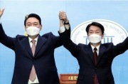 윤석열 국민의힘 대선 후보, 안철수 국민의당 후보는 3일 오전 8시 후보 단일화를 전격 선언했다. 윤 후보가 지난달 27일 기자회견을 통해 “안 후보로부터 단일화 결렬 통보를 받았다”며 협상 일지를 공개한 후 사흘만에 이뤄진 극적 성사다. 안 후보가 지난달 13일 ‘여론조사 단일화’를 제안한 시점으로부터 19일 만이기도 하다. 이에 따라 이번 대선은 안 후보가 사퇴한 가운데 이재명 더불어민주당 대선 후보, 윤석열 후보, 심상정 정의당 후보 3자 구도로 치러질 것...