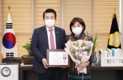 구로구의회 곽윤희 부의장이 지난 5일 구로구의회 의장실에서 서울시구의회의장협의회로부터 ‘지방의정대상’을 수상했다. 이번 시상식은 코로나19로 인한 사회적 거리두기 상황을 고려해 구로구의회 의장실에서 박동웅 의장이 협의회장을 대신해 곽 부의장에게 수여했다. 지방의정대상은 서울시 구의회 의장협의회가 적극적인 의정활동으로 지역사회 발전에 헌신하고 자치구의회의 의정 발전에 기여한 의원을 선정해 수여하는 상이다. 곽윤희 부의장은 현 제8대 후반기 구...