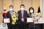 곽윤희 의원, 소통 충실한 의정활동으로 의정 발전 기여정형주 의원“구민행복과 지역발전 힘쓰겠다”소감 밝혀 구로구의회 곽윤희 의원과 정형주 의원이 지난 11월 5일 서울시 구의회 의장협의회로부터‘지방의정대상’을 수상했다. 서울시 구의회 의장협의회는 적극적인 의정활동으로 지역사회 발전에 헌신하고 자치구의회의 의정 발전에 기여한 의원을 선정해‘지방의정대상’을 수여하고 있으며, 이번 시상식은 코로나19로 인한 사회적 거리두기 상황을 고려해 구로구의...