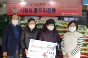 동구로새마을금고(이사장 이계명)에서는 지난 12월 30일 오후 2시 동구로새마을금고에서 구로4동 생활보호대상자 어르신들과 구로4동 민숙경 동장이 참석한 가운데 ‘2020년 MG희망나눔 사랑의 좀도리운동’을 전개했다. 이날 전달한 ‘2020년 사랑의 좀도리운동’은 지난해 조합원들이 취약 계층을 대상으로 한 사랑의 쌀을 십시일반 모금한 성품 20kg 300포를 구로4동 약 200포와 구로2동 약100포를 각각 전달했다. 동구로새마을금고는 지난 4월 구로2동 2곳에 통합 이전...