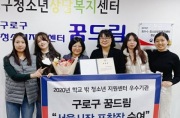 구로 궁동 청소년지원센터 꿈드림서울‘꿈드림’우수기관 선정, 서울시장상 수상 구로구 궁동에 위치한 구로구청소년지원센터 꿈드림(센터장 심수현)이 2020년 서울지역 꿈드림 우수기관으로 선정돼 지난 11월 25일 서울시 연합 청소년안전망 보고대회에서 ‘서울시장상’을 수상했다고 밝혔다. 구로구청소년지원센터 꿈드림은 2012년부터 두드림 해밀 사업을 시작으로, 학습 및 정서 지원이 가능토록 꾸준히 멘토 희망지원단을 양성하여 학교 밖 청소년을 지원했고, 진로 ...