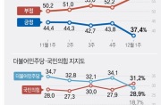 문대통령 지지율 첫 30%대 최저치…민주 동반급...