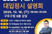 12월 16일 구청 강당서 대입 정시 설명회 개최12월 15일부터 26일까지 구로학습지원센터서 일대일 개별 맞춤형 상담 진행 구로구는 수능이 끝난 수험생들의 정시 전략 세우기를 돕기 위해 ‘2026학년도 대입 정시 지원 프로그램’을 운영한다. 구는 12월 16일 저녁 7시 구청 강당에서 ‘2026 구로구 대입 정시 설명회’를 개최한다. 관내 수험생과 학부모 150명을 대상으로 정제원 EBS 대표 강사가 진행한다. 설명회에서는 △수능 총평과 주요 대학 정시 합격선 예측 △동일 점수대 대학 간 지원 영역별 유불리 분석 등을 제시할 예정이다...