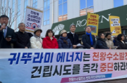 “천왕동수소발전소 건립 공사 막을 것" 천왕수소발전소반대 비상주민대책위원회는 27일 오전 11시 귀뚜라미 본사 앞에서 서울시와 귀뚜라미 에너지가 강행하고 있는 '천왕수소발전소 건립 시도'를 중단할 것을 촉구하는 집회를 가졌다. 이날 집회에는 구로구 주민 30여 명이 참석했으며, 최재희 진보당 구로구청장 보궐선거 후보와 함께 장인홍 민주당 구로구청장 보궐선거 후보와 김인제 서울시의원, 방은경 구로구의원이 참석했다. 최재희 후보는 발언을 통해 "SK에너지는 발전 용량이 3,000kW 이상이 되면 산자부의 허가를 받아야 하...