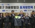 구로구가 지난 14일 오전 11시 구청 본관 르네상스홀에서 ‘자율방범대 동계 방한복 전달식’을 가졌다. 이날 행사에는 장인홍 구청장을 비롯해 자율방범연합대장을 포함한 자율방범대장 7명이 참석한 가운데 장 구청장은 지역 치안을 위해 헌신하는 자율방범대원들의 노고를 격려하고 동계 방한복을 전달했다. 장인홍 구청...