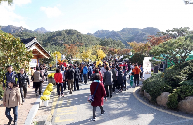 아울러 가족단위 관광객들이 국화화분을 만들고 집으로 가져가 키우는 '화목국화 테이크아웃', 국화동산 의상체험과 국화꽃 화관만들기 등 국화와 연관된 다채로운 체험행사에 어르신들의 옛 추억을 떠올리게 하는 전통방식의 '떡메치기 체험' 연인들의 '스마트포토 인화체험', 가족의 건강을 체크할 수 있고 관람객들의 편안한 휴식처로 제공하는 '건식족욕 및 지압체험' 등 체험거리도 풍성하다.