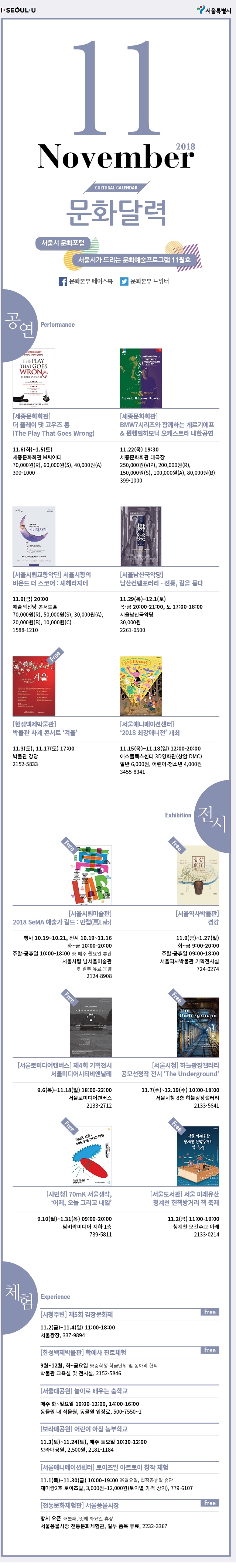 2018년 11월 서울시 문화행사일정