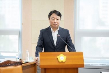 ▲구로구의회 국민의힘 김용권 의원이 지난 9일 열린 제330회 구로구의회 임시회 복지건설위원회 안건심사에서 조례안 제안설명을 하고있다.