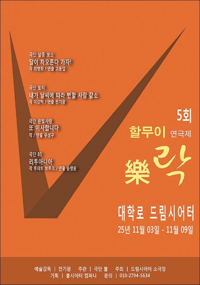 제5회 할무이 연극제 ‘락樂’은 11월 3일부터 9일까지 서울 대학로 드림시어터 소극장에서 열린다.