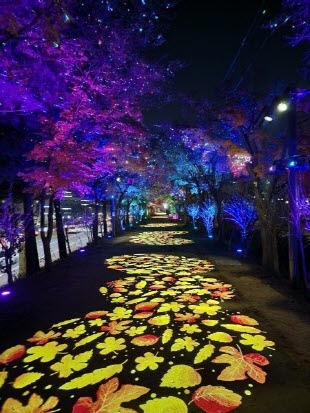 ▲가을 단풍잎이 흩날리는 ‘단풍길’ 조명 연출 모습
