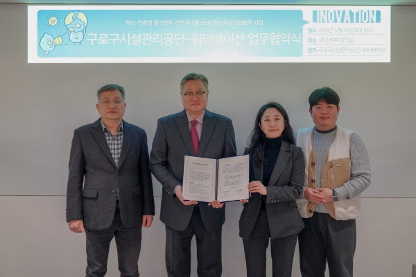 구로구시설관리공단(이사장 송인호)은 지난 12월 9일, ㈜워터베이션과 친환경 공기정화 기술의 실증 협력 및 공공시설 탄소저감 추진을 위한 업무협약을 체결했다고 밝혔다.