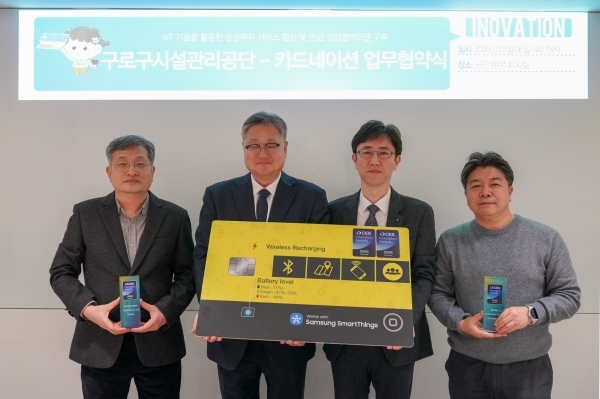 ▲구로구시설관리공단은 지난 1월 6일 IoT 카드 전문기업 카드네이션과 ‘IoT 기반 안심케어 서비스 구축’을 위한 업무협약(MOU)을 체결했다.