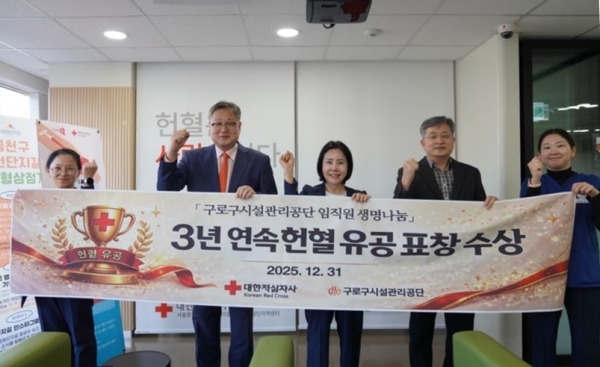 구로구시설관리공단(이사장 송인호)은 대한적십자사가 주관하는 헌혈 유공 기관표창을 2023년부터 2025년까지 3년 연속 수상했다고 밝혔다.