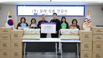 건강식품판매업체 알레(alle) 김시황 대표는 지난 2월9일 구로구청 창의홀에서 멀티비타민, 유기농 컬리케일, 멜라토닌 등 6천여만원 상당의 건강기능식품을 구로구청에 전달했다.<사진> 이 자리에는 김시황 알레 대표, 메이제이 무역 백주옥 대표, 장인홍 구청장, 이경애 희망복지재단 사무국장이 참석했다.