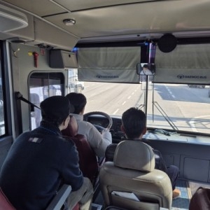 ▲ 마을버스 운전자 취업지원사업 참여자가 주행 실습을 하고 있다.