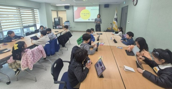 ▲ 구로미래인재 로봇코딩 프로젝트 1기 초등학교 1·2학년 학생들이 카미봇 프로그램 수업을 듣고 있다.