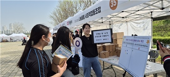 주요 내용으로는 2026년부터 변경된 우리나라 장애 유형 16개에 대한 이해, 65세 이상 어르신의 인지 저하가 지적장애에 포함되는지 여부, 호흡기 장애인의 기본 생활 수칙인 금연 인식 등에 대한 질문과 응답이 이어졌다. 캠페인 참여자에게는 핸드크림, 물티슈, 화장지 등으로 구성된 생활용품 500세트가 제공됐다.