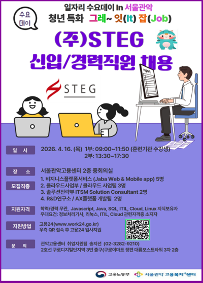 고용노동부 서울관악지청 관악고용센터는 4월 16일 구직자에게 면접 기회를 제공하고 기업에는 우수 인재 채용의 장을 마련하기 위해 ‘으뜸기업 그레~잇(It) 잡(JOB) 정보통신업 일자리 수요데이 in 서울관악’을 개최했다.