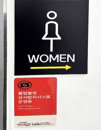 ▲ 구로구민체육센터 화장실 앞에 부착된 '불법촬영 탐지시스템' 운영중 안내 표시