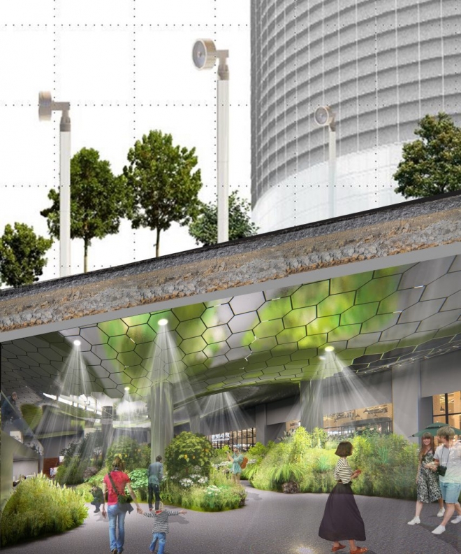 이번 프로젝트의 핵심 시설은 지상의 햇빛을 지하로 끌어들여 지상과 유사하게 다양한 식물이 자랄 수 있는 지하 환경을 구현해내는 ‘태양광 채광시스템’이며 천장의 8개 채광시스템을 통해 자연광을 지하로 끌어들여 마치 햇빛이 스며드는 동굴 속에 들어온 것 같은 공간으로 재탄생될 계획이다.