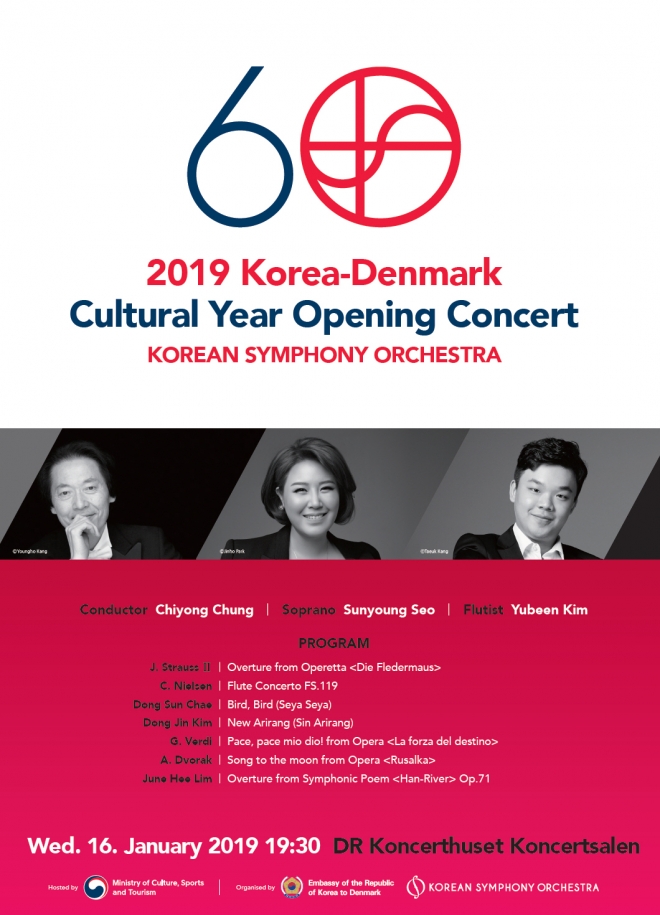 문화체육관광부(장관 도종환, 이하 문체부)와 덴마크 문화부(장관 메테 보크, Mette Bock)는 2019년을 ‘한국-덴마크 상호 문화의 해(2019 Korea-Denmark Cultural Year)’로 지정하고, 1월 16일(수) 덴마크 코펜하겐 데이니시 라디오(Danish Radio) 콘서트홀에서 열리는 ‘코리안 심포니 오케스트라’ 개막 공연을 시작으로 다양한 문화교류 프로그램을 진행하기로 하였다