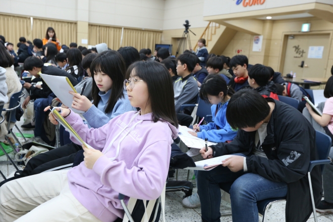 구청 강당에서 열린 이날 행사에는 영화에 관심 있는 전국의 초등학교 4학년부터 중학교 3학년까지의 학생 300여명이 심사위원으로 직접 참여했다.