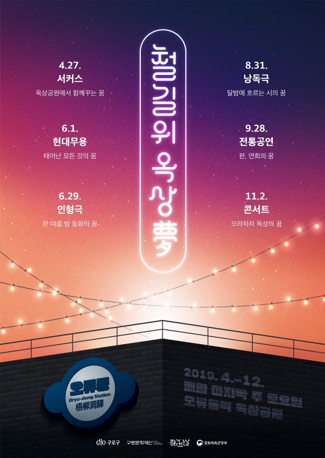 오류동역 문화공원에서는 매 월 마지막 주 토요일 오후 6시부터 8시까지 ‘철길 위 옥상 夢(몽)’을 주제로 공연이 펼쳐진다.