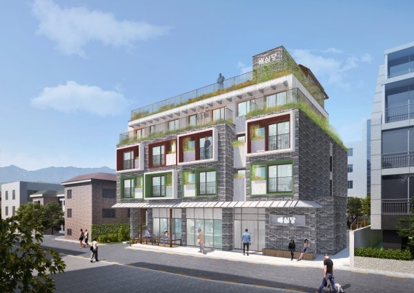 <해심당>은 어르신들이 ‘편한 마음을 가지고 지내실 수 있는 집’을 의미한다. 지하1층~지상4층, 연면적 1,489㎡, 21호 규모로 올 연말부터 입주를 시작한다.