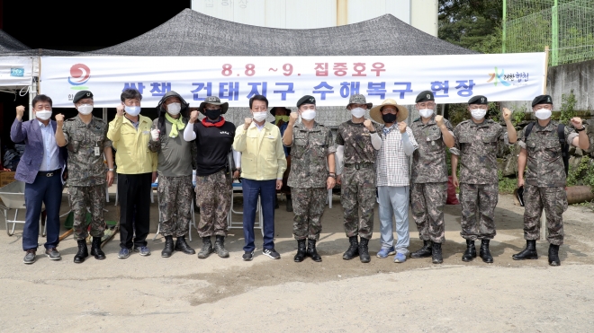 이날 현장에 도착한 서욱 참모총장은 마스크를 쓰고 연신 굵은 땀방울을 흘리며 피해 복구에 여념이 없는 장병들을 만나 격려의 말을 전했다. 서욱 참모총장은 “피해 복구 현장이 무덥고 습해 어려운 여건인데도 불구하고 우리 장병들이 힘든 내색없이 서로 힘을 합쳐 복구에 나서는 모습을 보니 대견하고 든든하다”며, “주민들이 우리 장병들을 믿고 의지하는 만큼 주민들의 아픔을 조금이라도 덜 수 있도록 정성을 다해 지원해 달라”고 말했다.