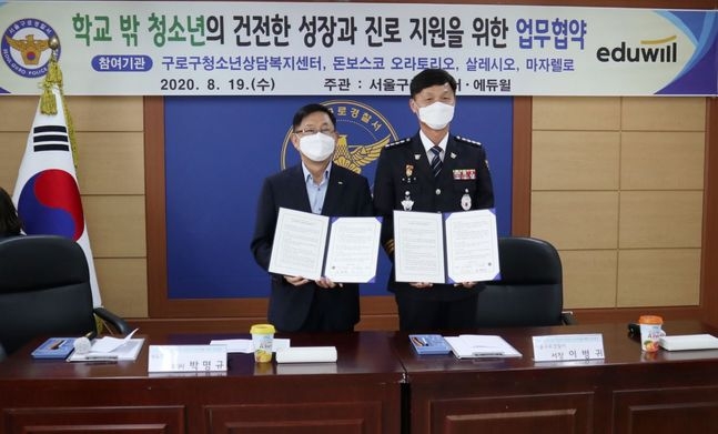 구로경찰서(서장 이병귀)와 에듀윌(대표 박명규)의 ‘학교 밖 청소년의 건전한 성장과 진로 지원을 위한 업무 협약식’이 지난 19일 구로경찰서에서 열렸다.