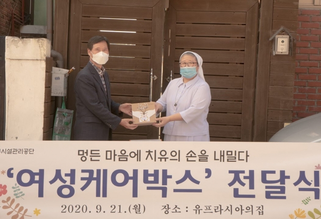구로구시설관리공단은 21일 청소년 보호시설(유프라시아의집)에 여성케어박스 50개를 전달했다.