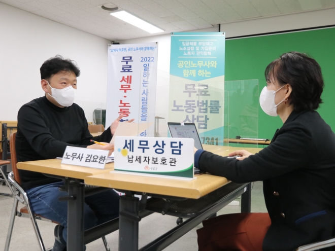 상담 서비스는 10월까지 첫째주, 셋째주 수요일 오후 1시부터 5시까지 구로구 노동자종합지원센터(디지털로 242, 213호)에서 운영된다. 구청 납세자보호관이 국세‧지방세 등 세무 상담을 하고, 노동자종합지원센터 공인노무사가 최저임금‧근로조건 등 노동법 관련 상담을 맡는다.