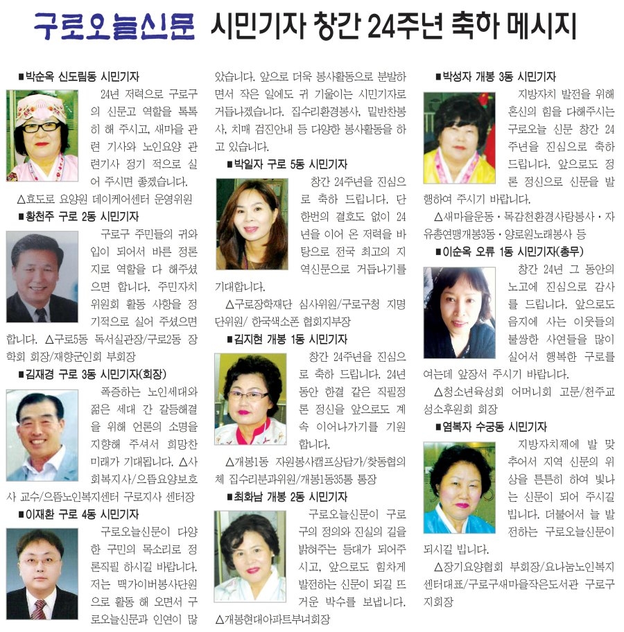 구로오늘신문 시민기자 창간 24주년 축하 메시지